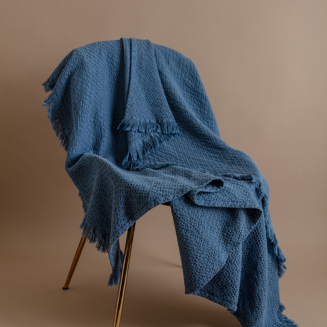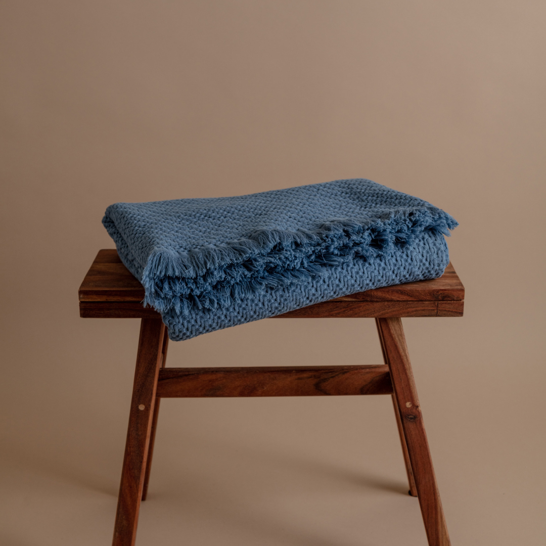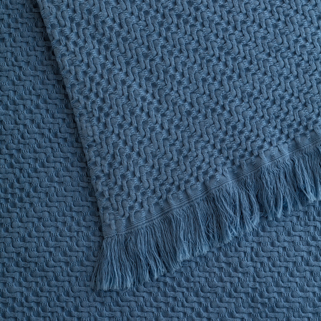 - Wykończony frędzlami – stylowe detale.